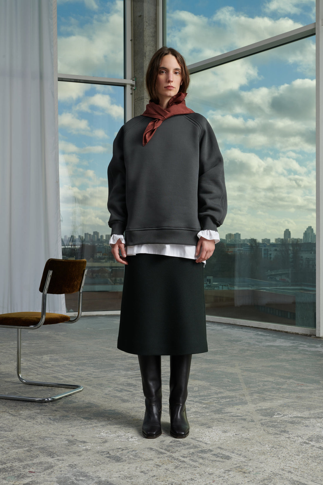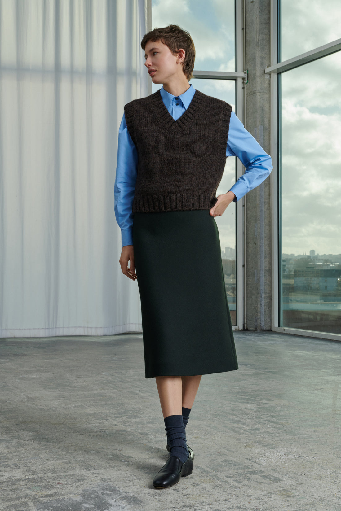 Woollen twill skirt - Straight cut- Concealed zip fastening on the side