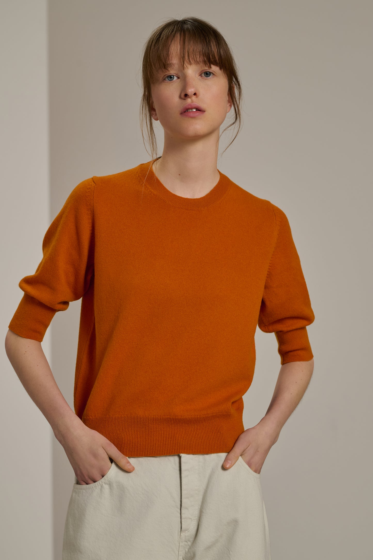 Short sleeve cashmere jumper orange