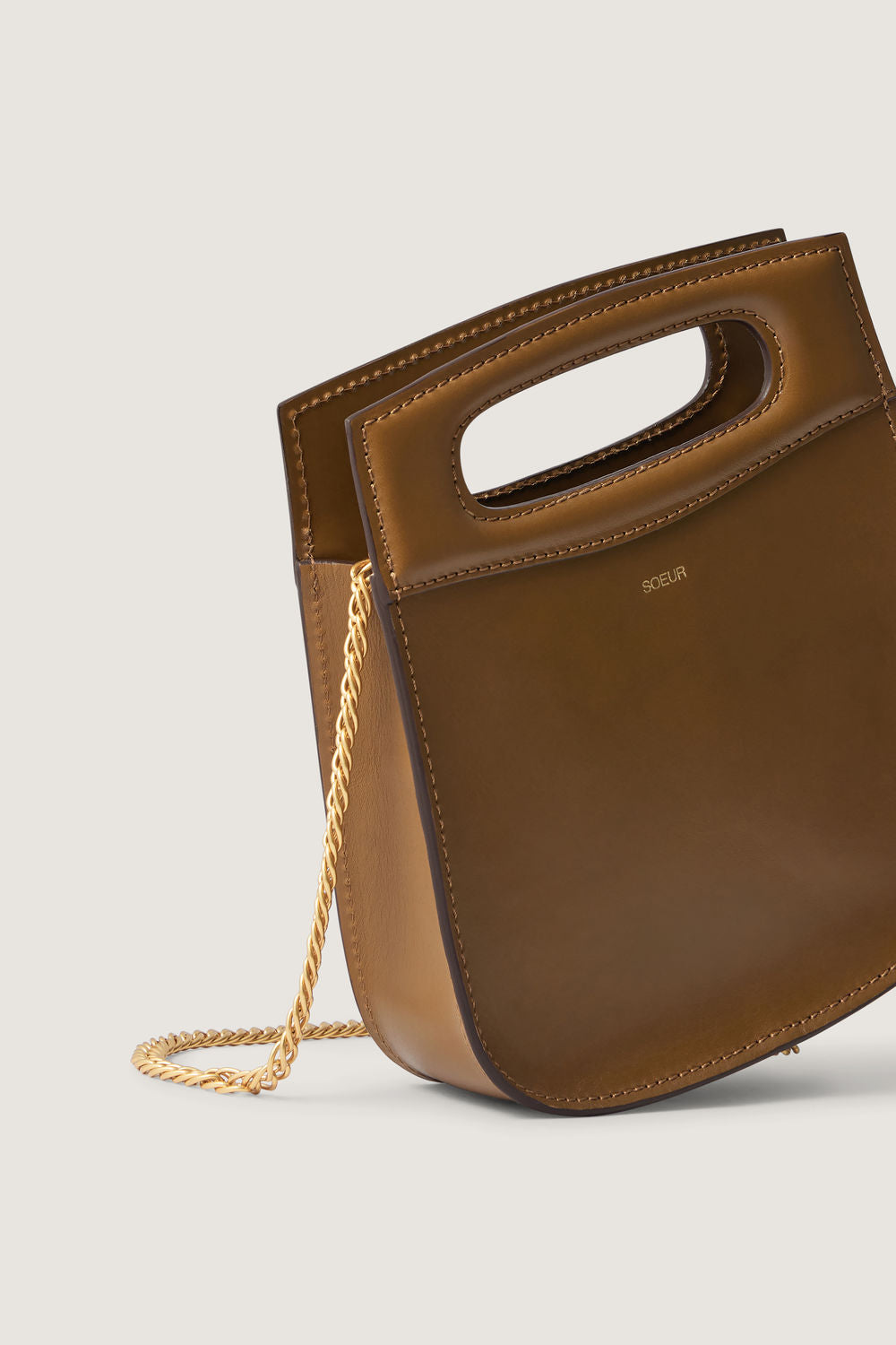 CHERI MINI is a scaled-down version of one of our iconic bags, recognizable by its distinctive oval handle. It can be carried by hand or worn across the body thanks to its slender golden chain. It's the perfect accent for a dressy outfit, while also being practical for everyday use when you only need to carry the essentials.